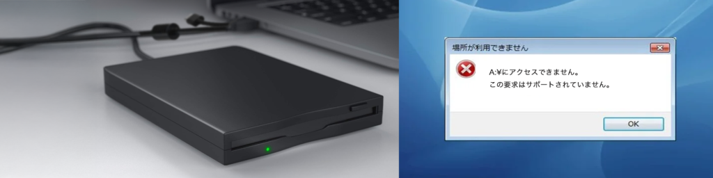 フロッピーディスクドライブで「A:¥にアクセスできません。この要求はサポートされていません。」とエラーが出た時の対処方法