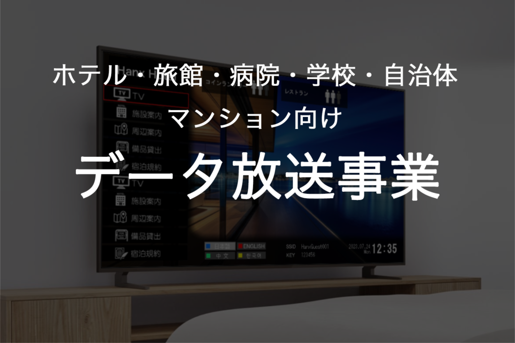 また、長年培った放送技術や放送局向けデータ放送システムを応用し、ホテルや病院向けのデータ放送を活用した館内放送用インフォメーションシステムを開発しております。